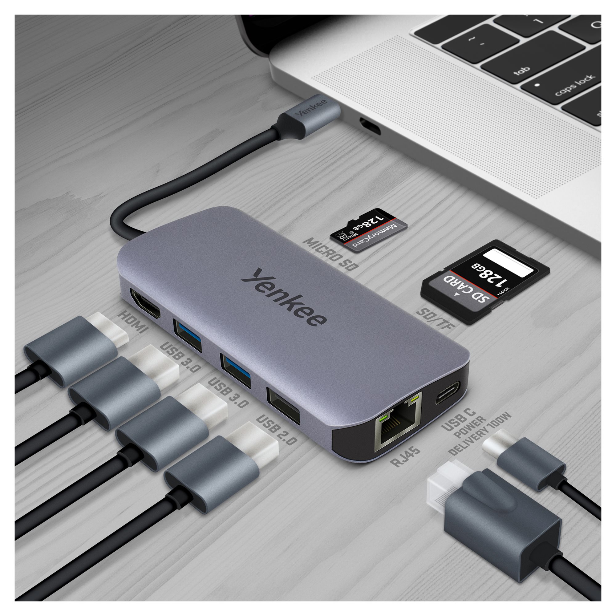 Ja sam univerzalni USB-C čvorište koje proširuje vaš notebook računar sa do 8 dodatnih konektora. Mogu da koristim tehnologiju Power Delivery 3.0 sa kojom do 100W energije ulazi u vaš laptop. U saradnji sa vrhunskim USB-C portom 3.2 gen. 2, sigurni ste da će se vaš uređaj brzo i najvažnije trajno napuniti. Sve to u kompaktnom metalnom kućištu koje je idealno za putovanja.
