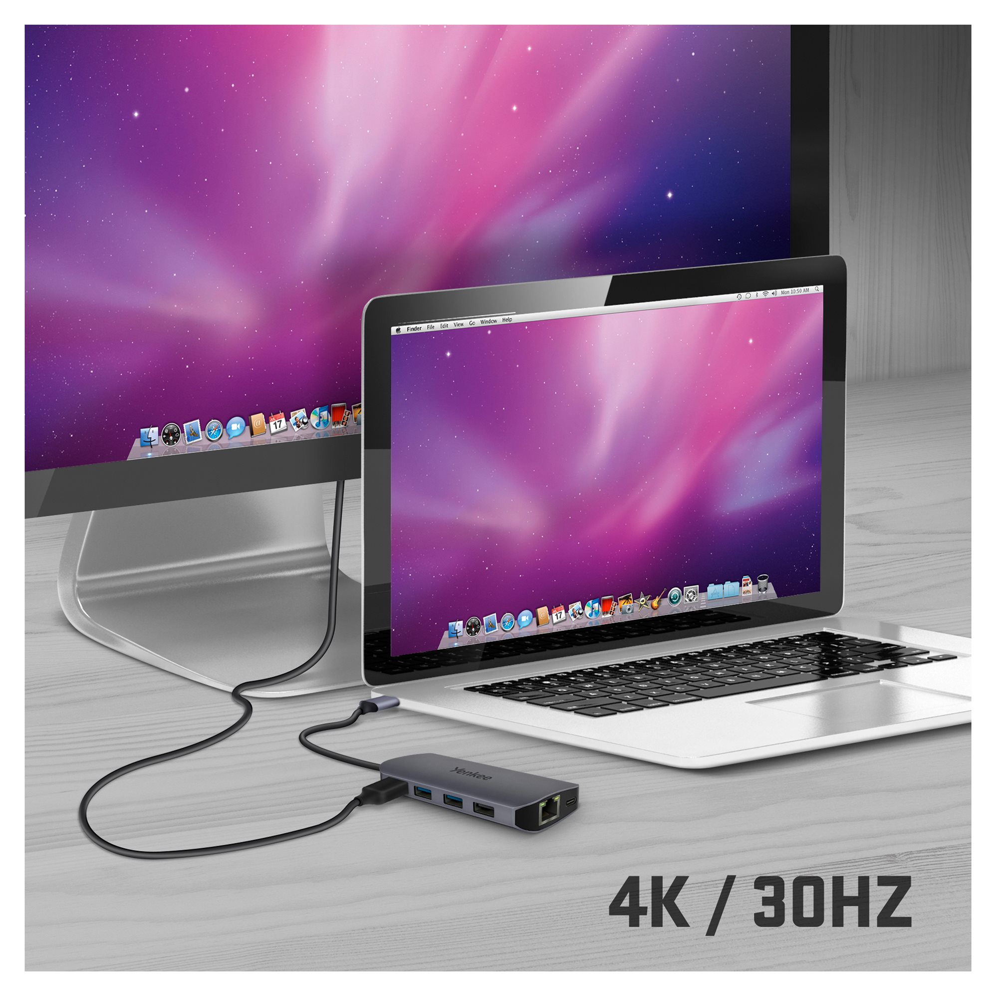 Povežite svoju omiljenu tastaturu ili miša sa tri USB-A konektora. Dva od njih su direktno klase 3.0, što za vas znači brzinu prenosa podataka do 5Gbps. Zahvaljujući tome, bez problema ćete povezati vašu flešku ili eksterne diskove, a istovremeno ću raditi sa njima izuzetno brzo. Mogu da se nosim sa bilo kojim sistemom. Bez obzira da li ste ljubitelj macOS -a, iPadOS -a ili Windows -a, vaša elektronika će me uvek razumeti.