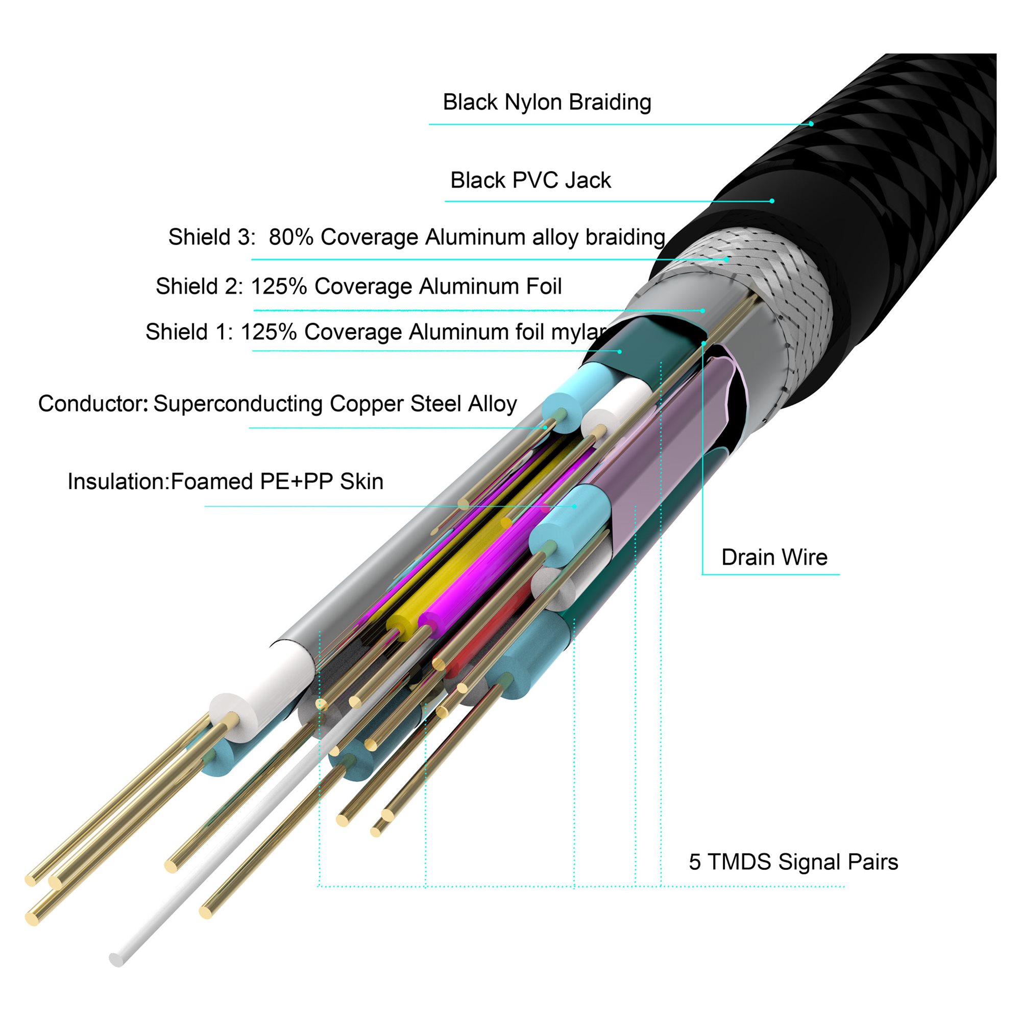 Kabl je napravljen od vrhunskih materijala. Pozlaćeni konektori od legure aluminijuma. Metali koji se koriste u konektorima obezbeđuju besprekoran prenos signala. Najlonska pletenica kabla garantuje otpornost na habanje i produžava vek trajanja kabla.