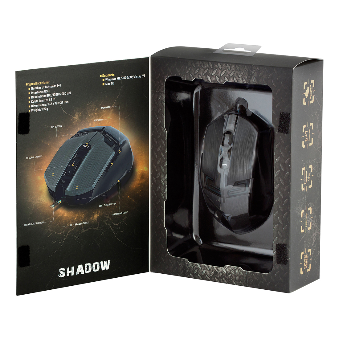 SHADOW YMS 3007 je dizajniran za manje zahtevne i povremene kompjuterske igrače. Miš ima precizan optički senzor sa podesivom rezolucijom 800/1200/2000 DPI.