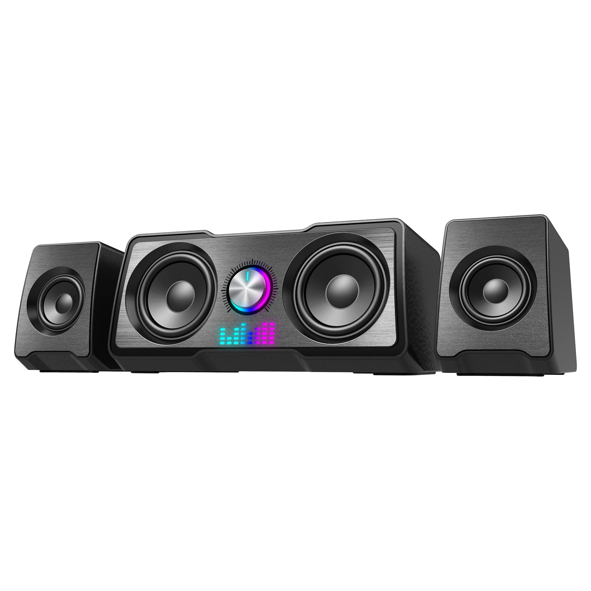 Još jedna od mojih prednosti je kompaktna veličina mog dobro dizajniranog kućišta. Elegantni stereo zvučnici sa dva satelita i vuferom sa suptilno sivom završnom obradom su minimalne veličine, tako da će stati na mali sto pored vašeg računara ili laptopa i ipak ostaviti dovoljno mesta za činiju kokica. Tako da sam savršen saputnik za vrhunsko audio iskustvo za igre, filmove ili onlajn video zapise.