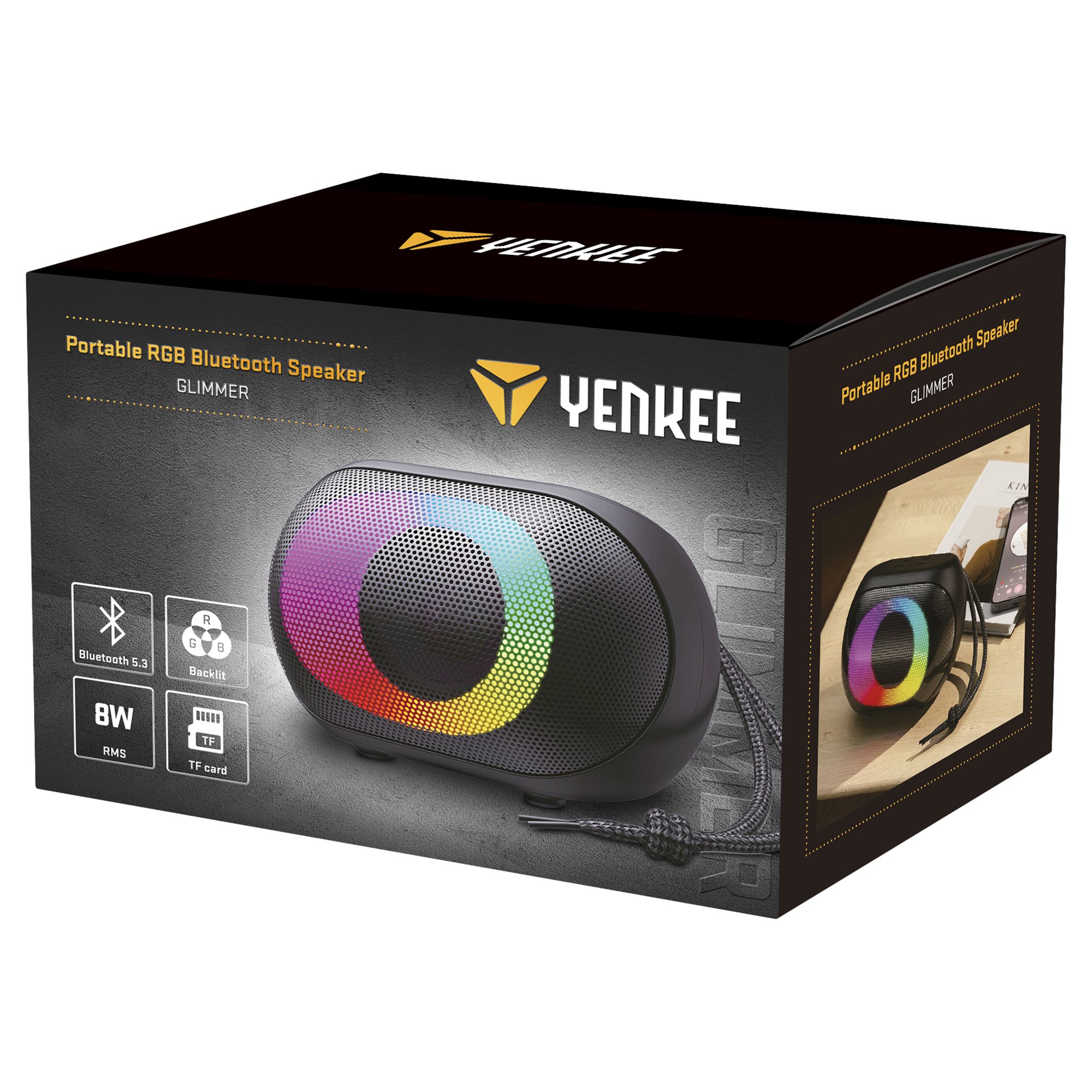 Otkrijte elegantan i kompaktan dizajn našeg malog prenosivog Bluetooth zvučnika sa RGB pozadinskim osvetljenjem. Njegova kompaktna veličina ga čini veoma prenosivim, idealnim za nošenje muzike sa sobom bilo gde.